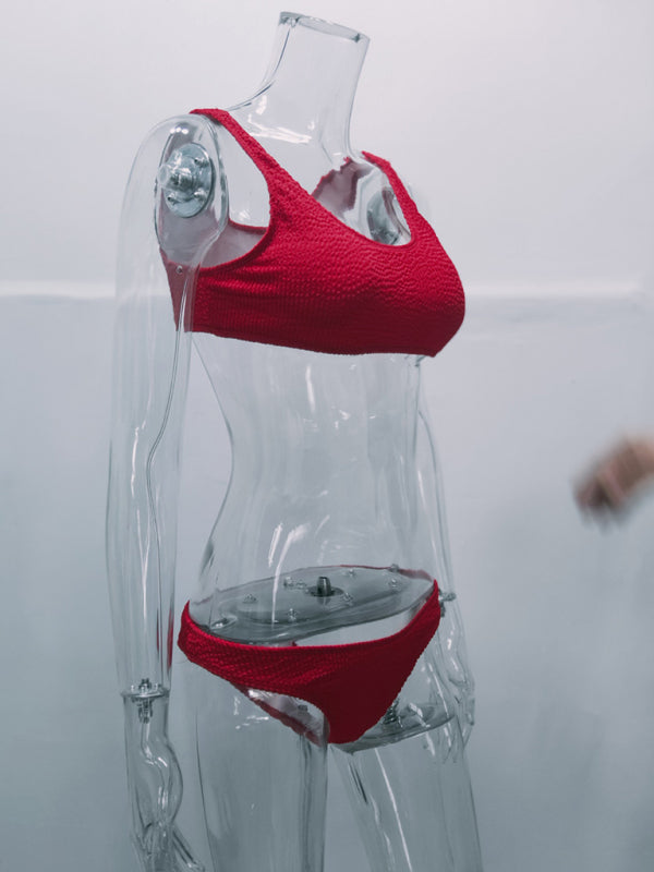 New solid color bikini vacation swimming sexy split swimsuit -