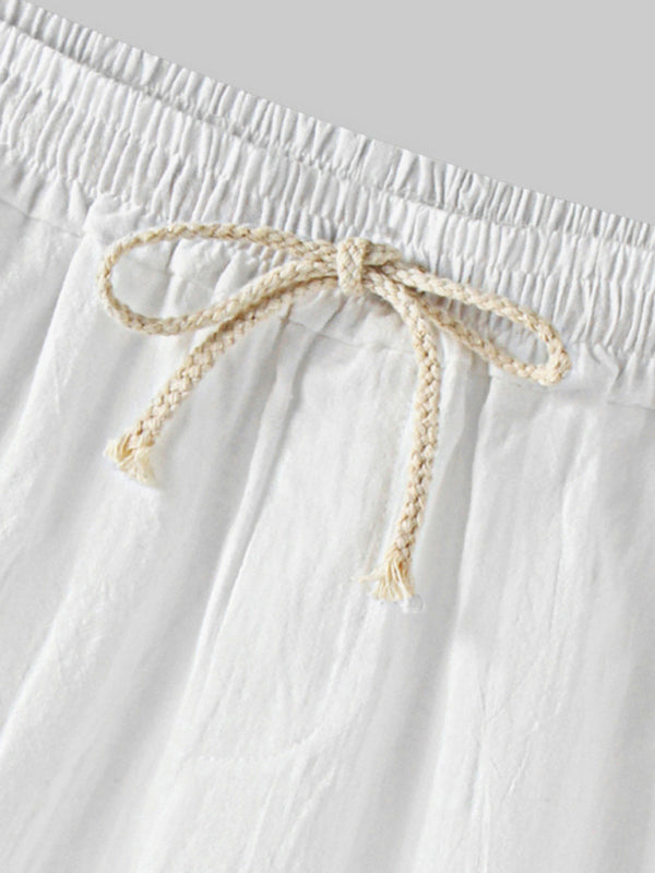 Pantalon décontracté pour homme en coton et lin, style coréen, couleur unie.